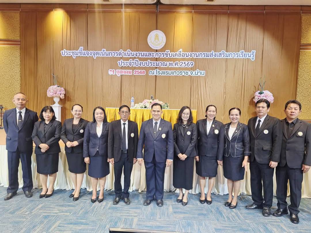ของกรมส่งเสริมการเรียนรู้ ประจำปีงบประมาณ ๒๕๖๙ โดยมี ดร.เกศทิพย์ ศุภวานิช อธิบดีกรมส่งเสริมการเรียนรู้ เป็นประธานในพิธีเปิด ณ โรงแรมเทวราช จังหวัดน่าน