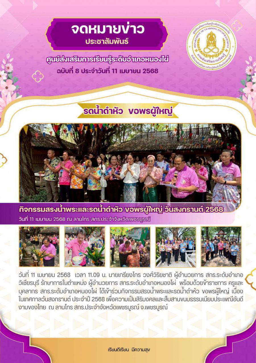 วันที่ 11 เมษายน 2568 นายเกรียงไกร วงศ์วิริยชาติ ผู้อำนวยการ สกร.ระดับอำเภอวิเชียรบุรี รักษาการในตำแหน่ง ผู้อำนวยการ สกร.ระดับอำเภอหนองไผ่ พร้อมด้วยข้าราชการครูและบุคลากรทางการศึกษา เข้าร่วมรับทราบนโยบายในการปฏิบัติงานของครูศูนย์การเรียนรู้และณ สำนักงานส่งเสริมการเรียนรู้ประจำจังหวัดเพชรบูรณ์