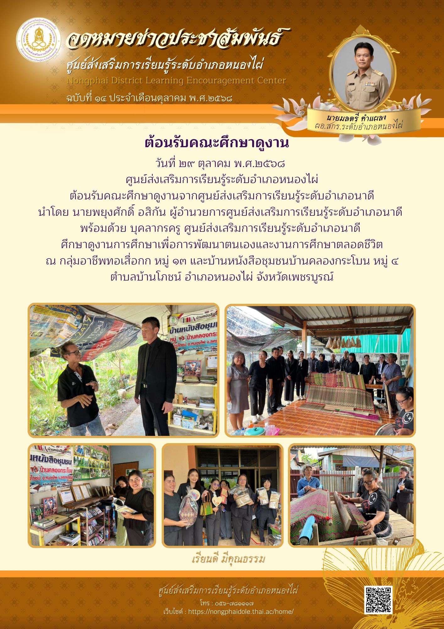 ศึกษาดูงานการศึกษาเพื่อการพัฒนาตนเองและงานการศึกษาตลอดชีวิต